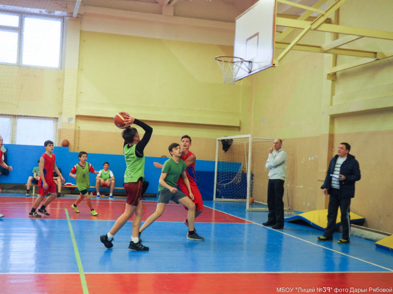 Одновременно в зале проходили игры сразу 4 команд! Лицеисты состязались с учащимися школ № 23 и 30. Наши спортсмены усердно боролись за победу. Даже падая, они сохраняли спокойствие и продолжали играть. Каждый удачный бросок зрители встречали бурными аплодисментами.