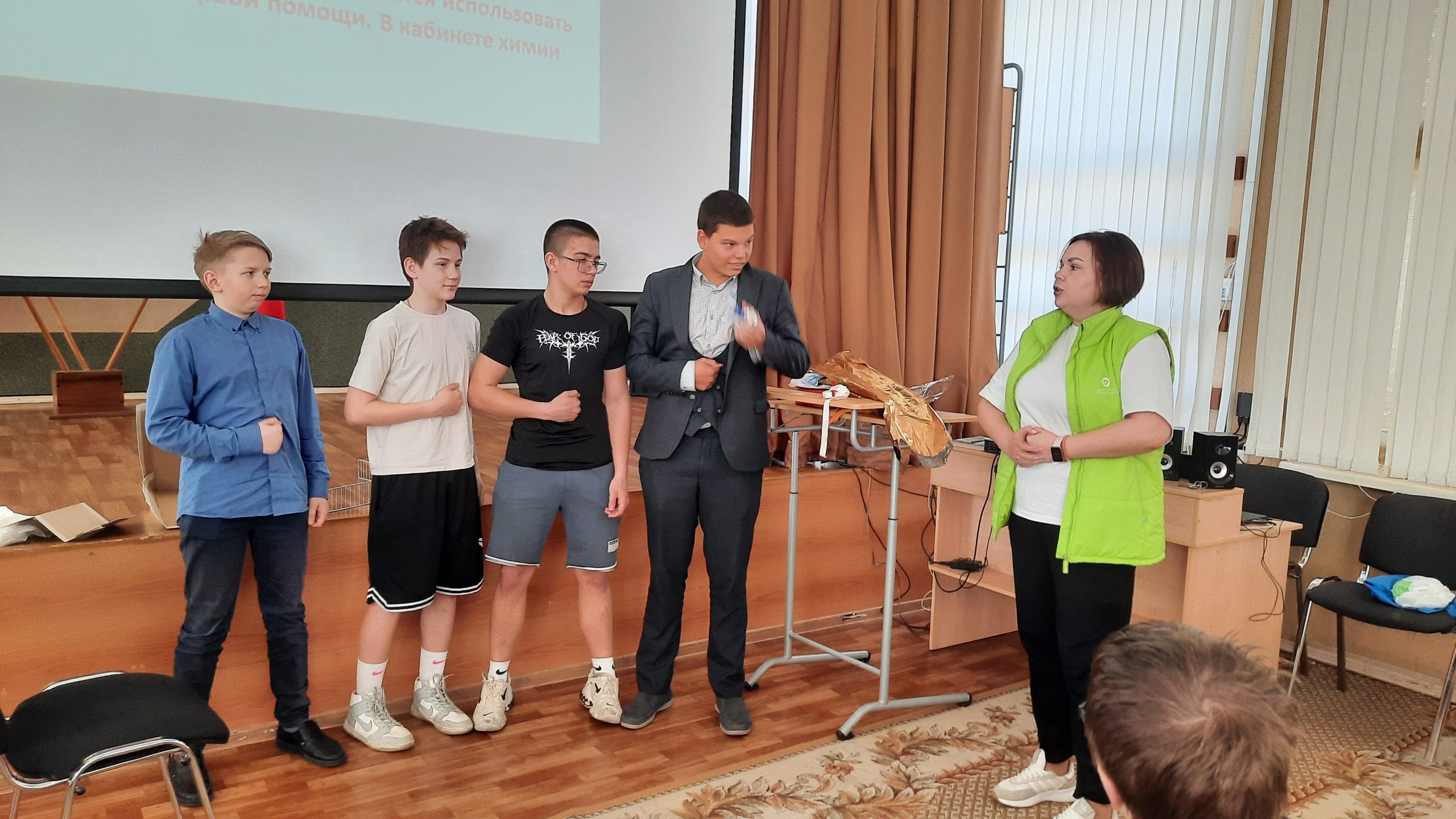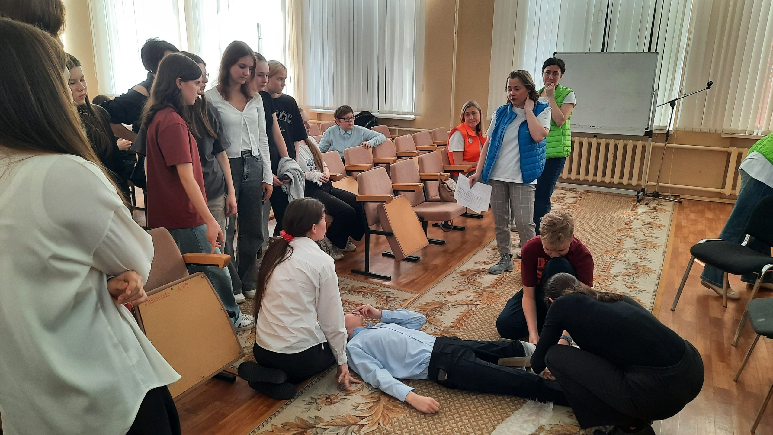 Ученики 7 и 10 классов посетили мастер-класс по оказанию первой помощи в рамках проекта ФГУП «ПО «Маяк» «Детская фабрика безопасности» под руководством С.А. Антроповой.
