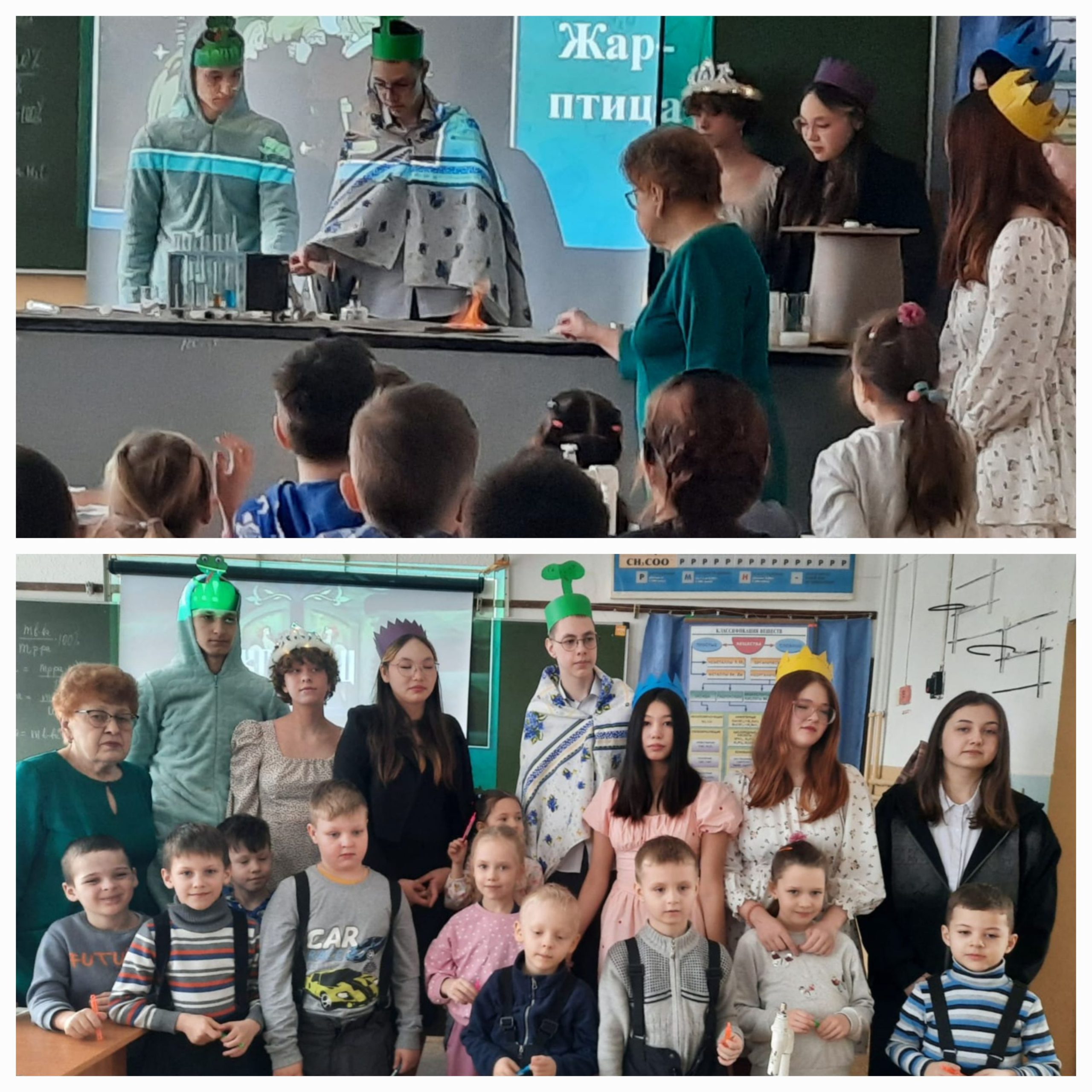 Учитель МБОУ СОШ №25 (СП) Лупеха Ирина Николаевна отправилась вместе с воспитанниками подготовительной группы МБДОУ№51 и учениками начальной школы в сказочное путешествие по Химической Стране Чудес. В школе посёлка Татыш, действительно, в этот день происходили волшебные события: горело перо Жар-птицы, лепестки Цветика-семицветика и Аленького цветочка сверкали яркими красками, обычная вода превращалась в газировку, сок или молоко… Интересное представление разыграли перед ребятами старшеклассники, которые в полной мере проявили свои индивидуальные способности и актёрское мастерство. Именно им были отведены главные роли. Через удивление и сказку Ирина Николаевна познакомила малышей с миром реакций и превращений, чтобы как можно раньше сформировать интерес к изучению сложной науки химии.