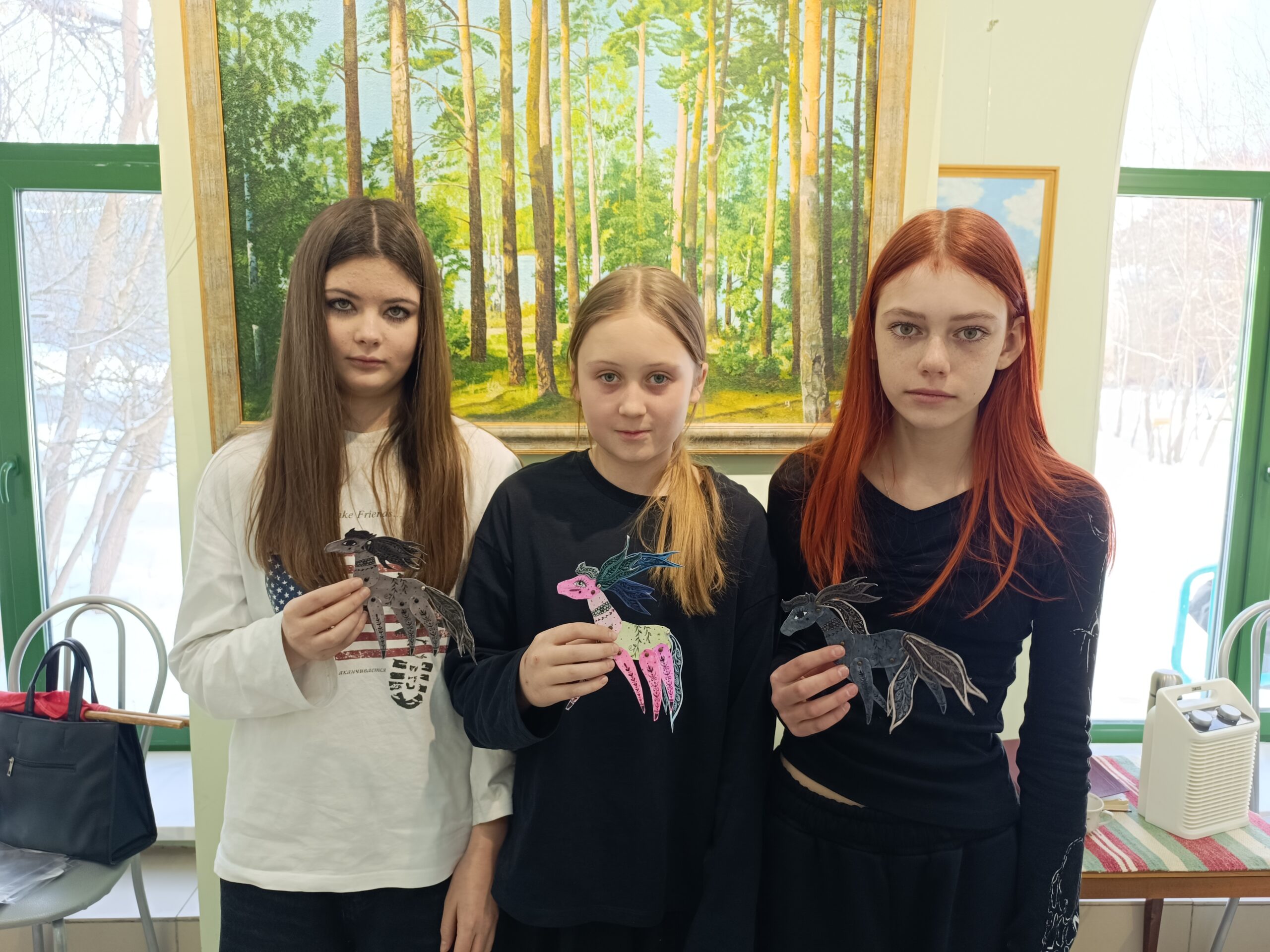 Занятие провели организаторы выставки Мария Андреева и Лариса Маркова. Обучающиеся познакомились с процессом создания подвижных игрушек и погрузились в творческий процесс! У каждого получились замечательные поделки в виде сказочной лошади. Работы оказались уникальными: разнообразие красок и стилей позволили ученикам проявить свою креативность.