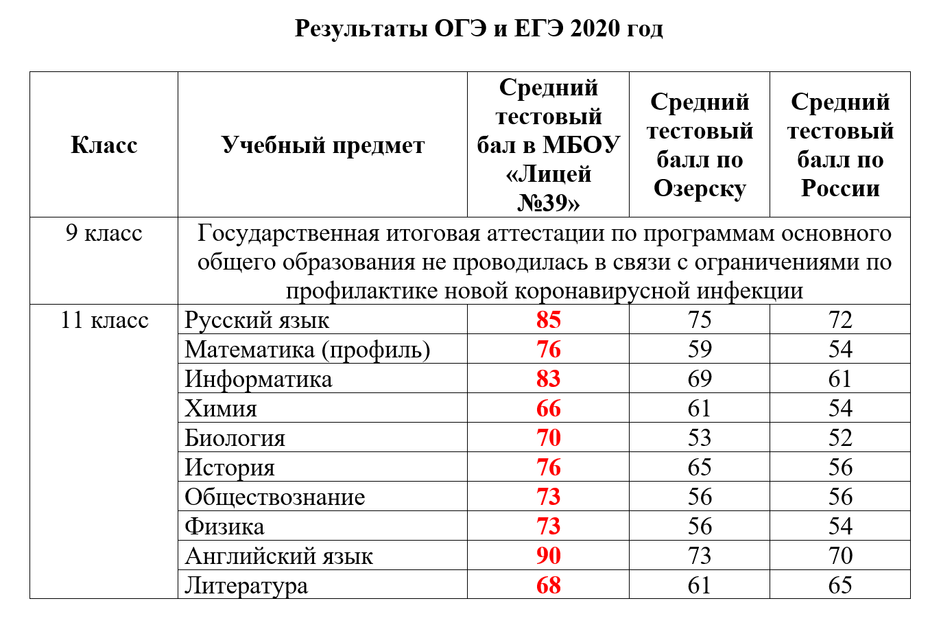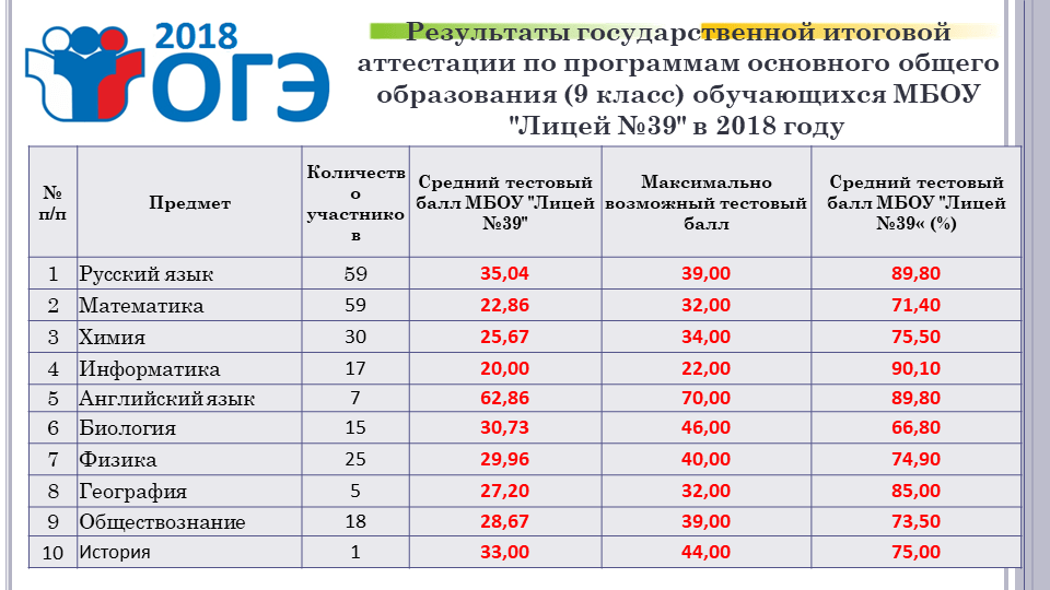 Результаты государственной итоговой аттестации