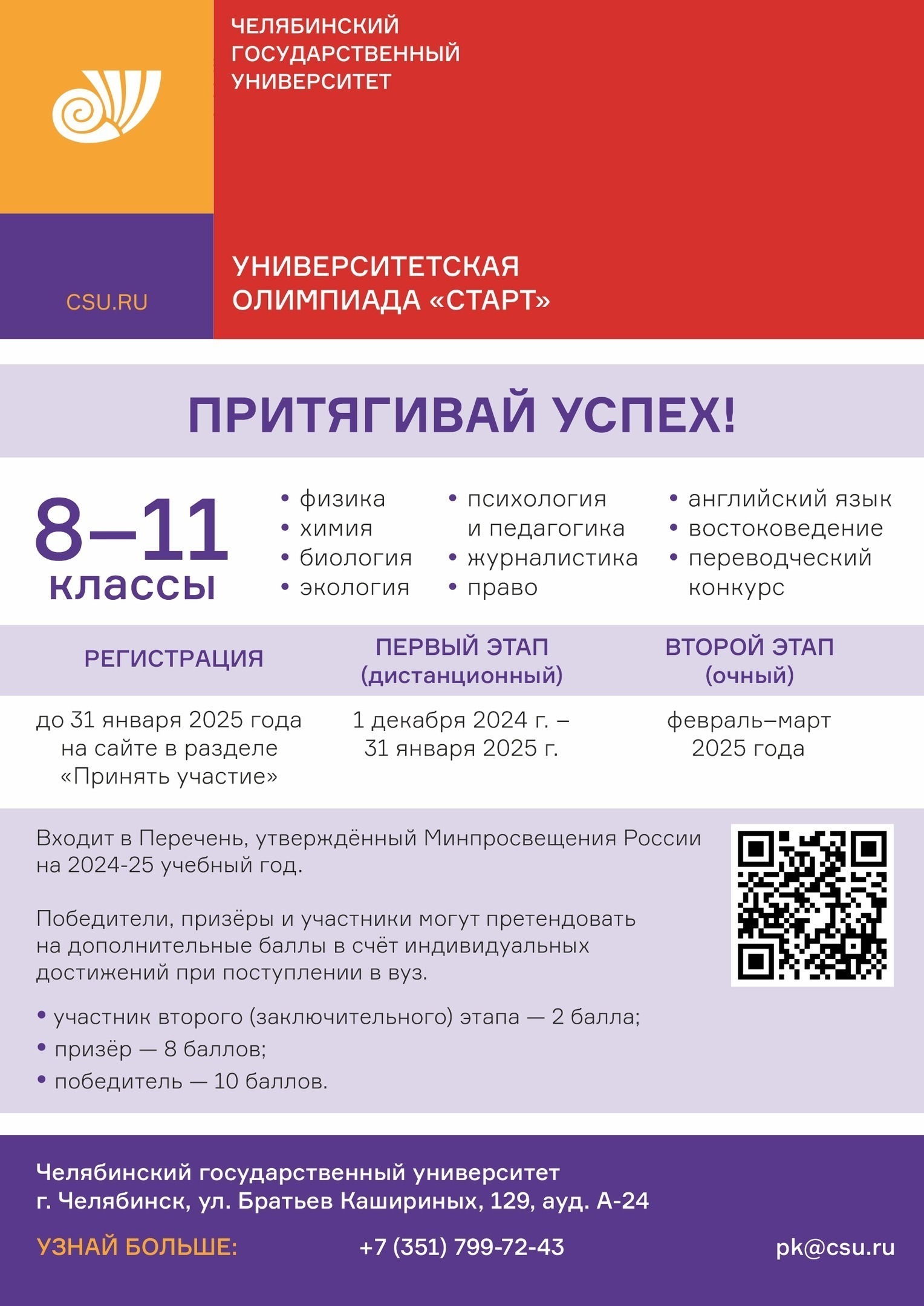 ЧелГУ приглашает  учеников 8-11 классов принять участие в следующих мероприятиях: