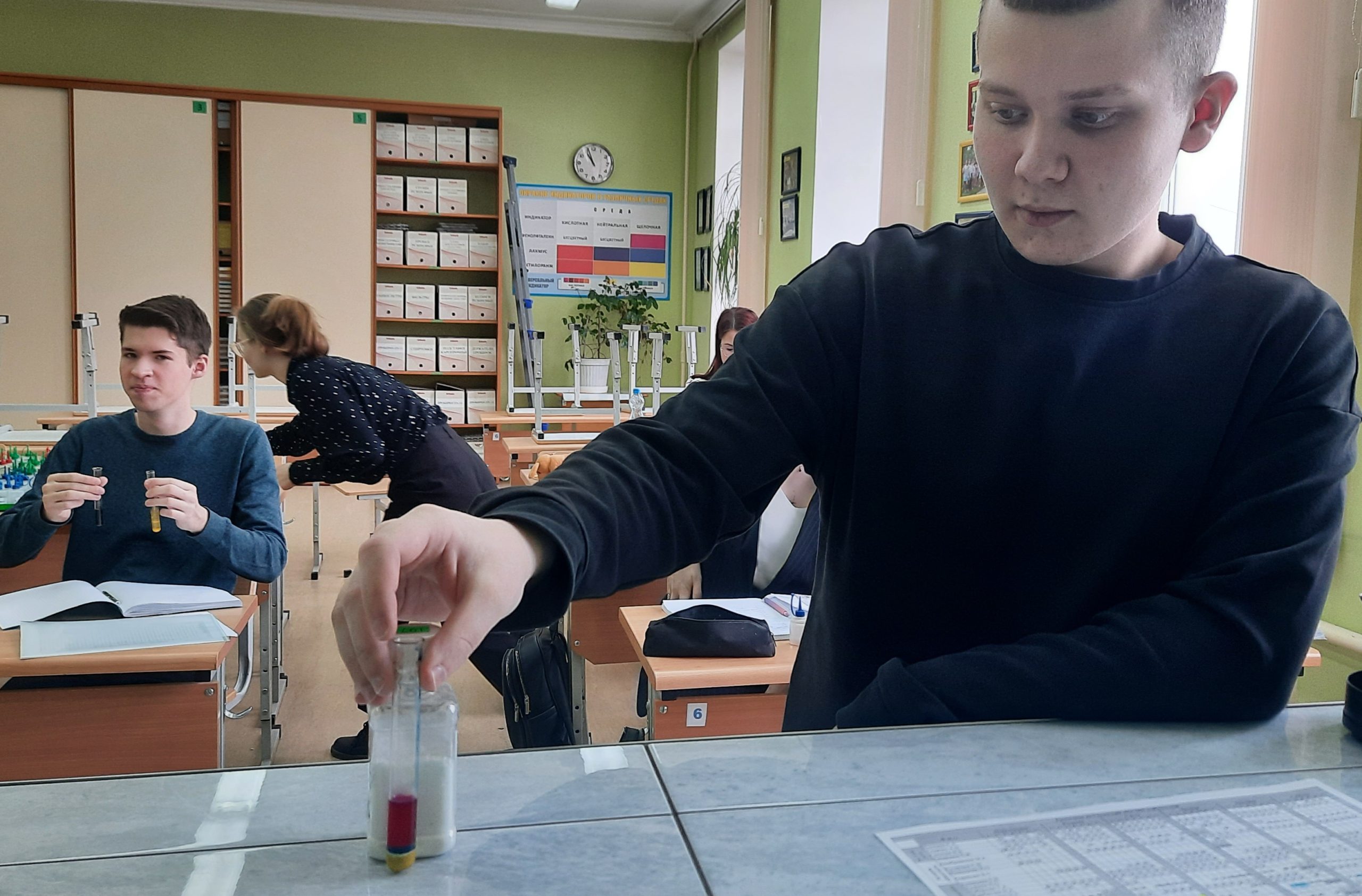 В преддверии праздника для обучающихся 11 классов прошло тематическое занятие «Качественный анализ в неорганической химии», посвященное особенностям выполнения заданий КИМов, которые встречаются на экзамене, разбору структуры работы, критериям оценки и требованиям к оформлению ответов. Ребята с удовольствием выполнили все предложенные учителем опыты.