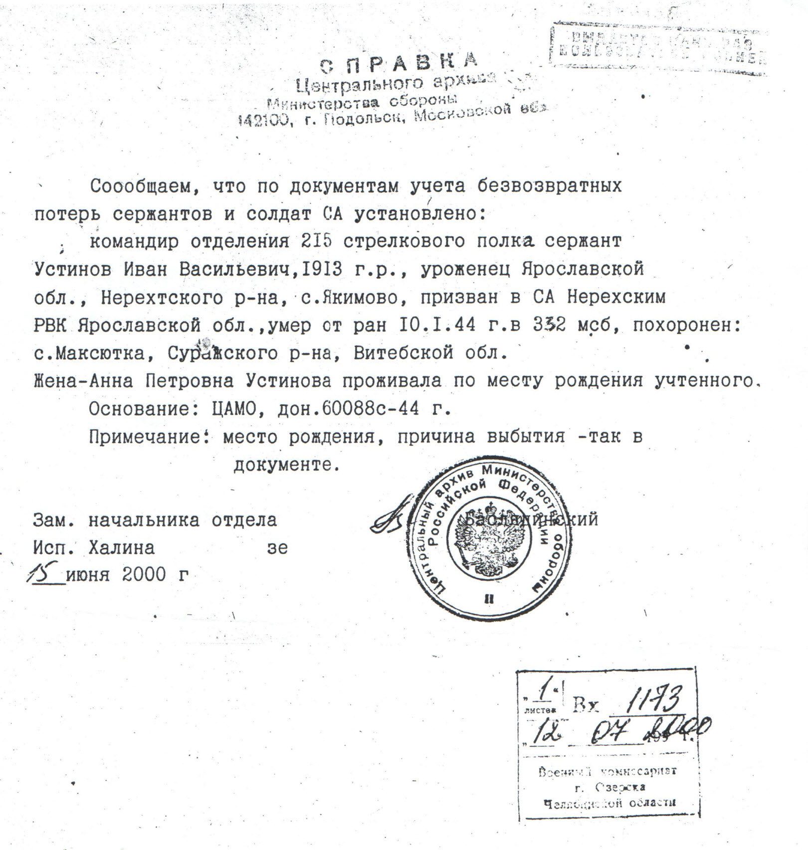 Мой прадед Иван Васильевич родился в 1913 году в с. Якимово Ярославской области. В звании сержанта командовал отделением 215 стрелкового полка 270 Краснознаменной стрелковой дивизии.