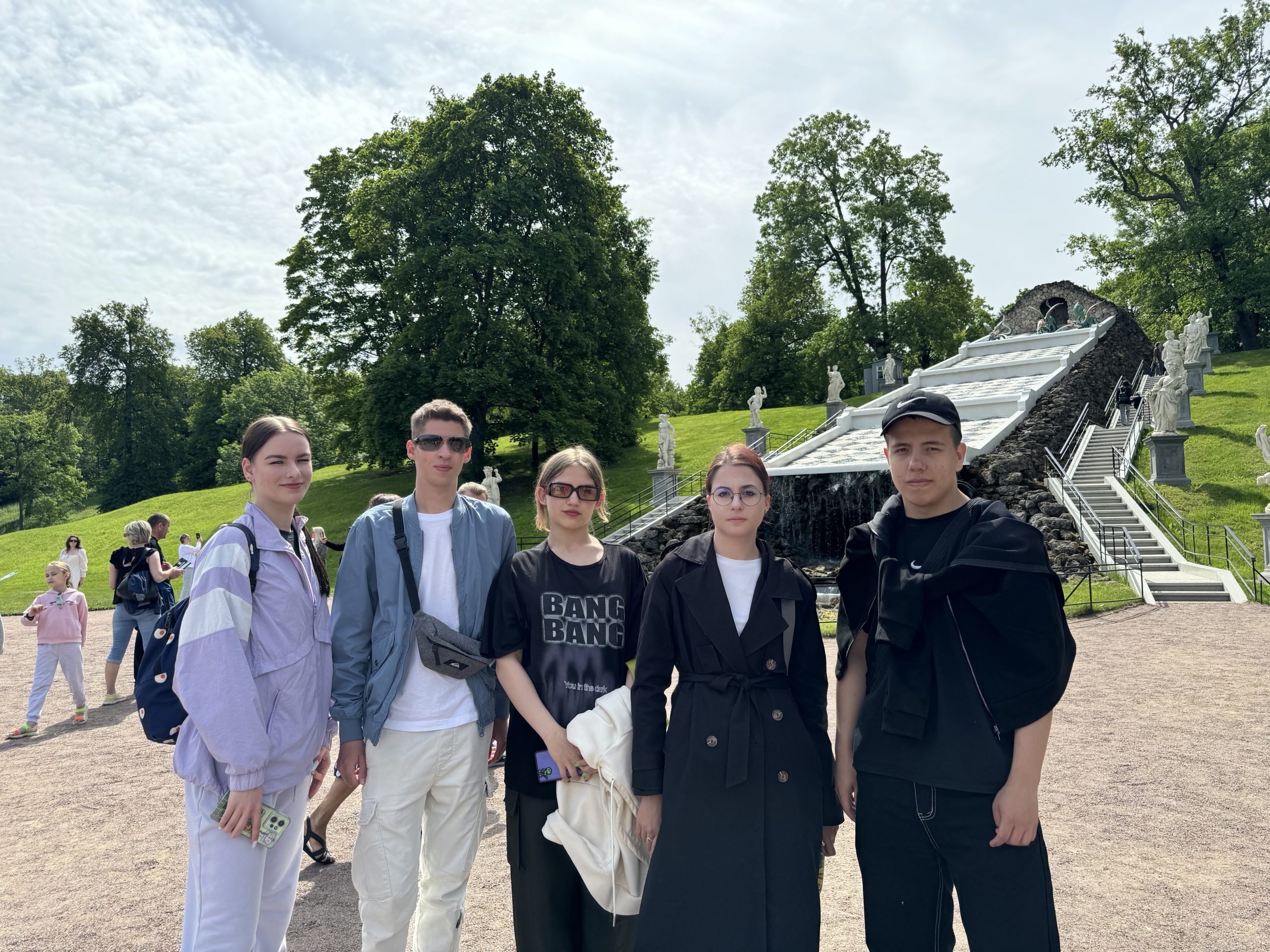 В последний день нашего увлекательного и познавательного путешествия мы отправились в дворцово-парковый комплекс Петергоф, где посетили Нижний и Верхний парки и музей «Банный корпус». Главной жемчужиной комплекса, безусловно, является Нижний парк с фонтанами, аллеями, беседками, лабиринтами, малыми дворцами и павильонами. Парк площадью 102,5 гектаров украшают около 150 фонтанов, среди которых столь любимые детьми и взрослыми шутихи «Дубок», «Зонтик», «Елочки» и другие.