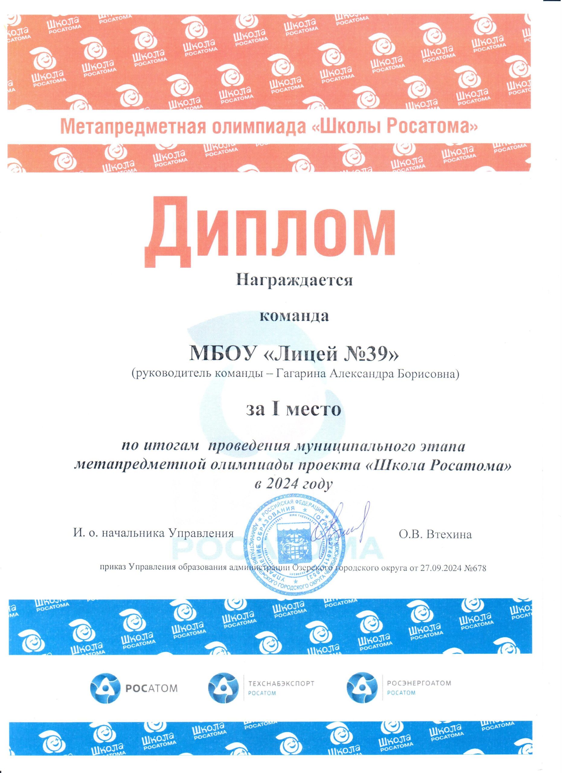 В метапредметной олимпиаде Росатома в этом году принимали участие ДВЕ команды лицеистов.