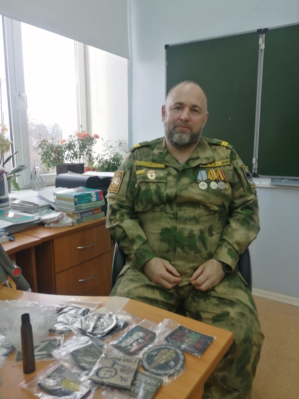 Гость рассказал о себе, о том, что уже не в первый раз участвует в боевых действиях. С 2001 по 2003 гг. он воевал в Чечне, а с началом спецоперации на Украине добровольцем вновь ушел защищать интересы нашей Родины.